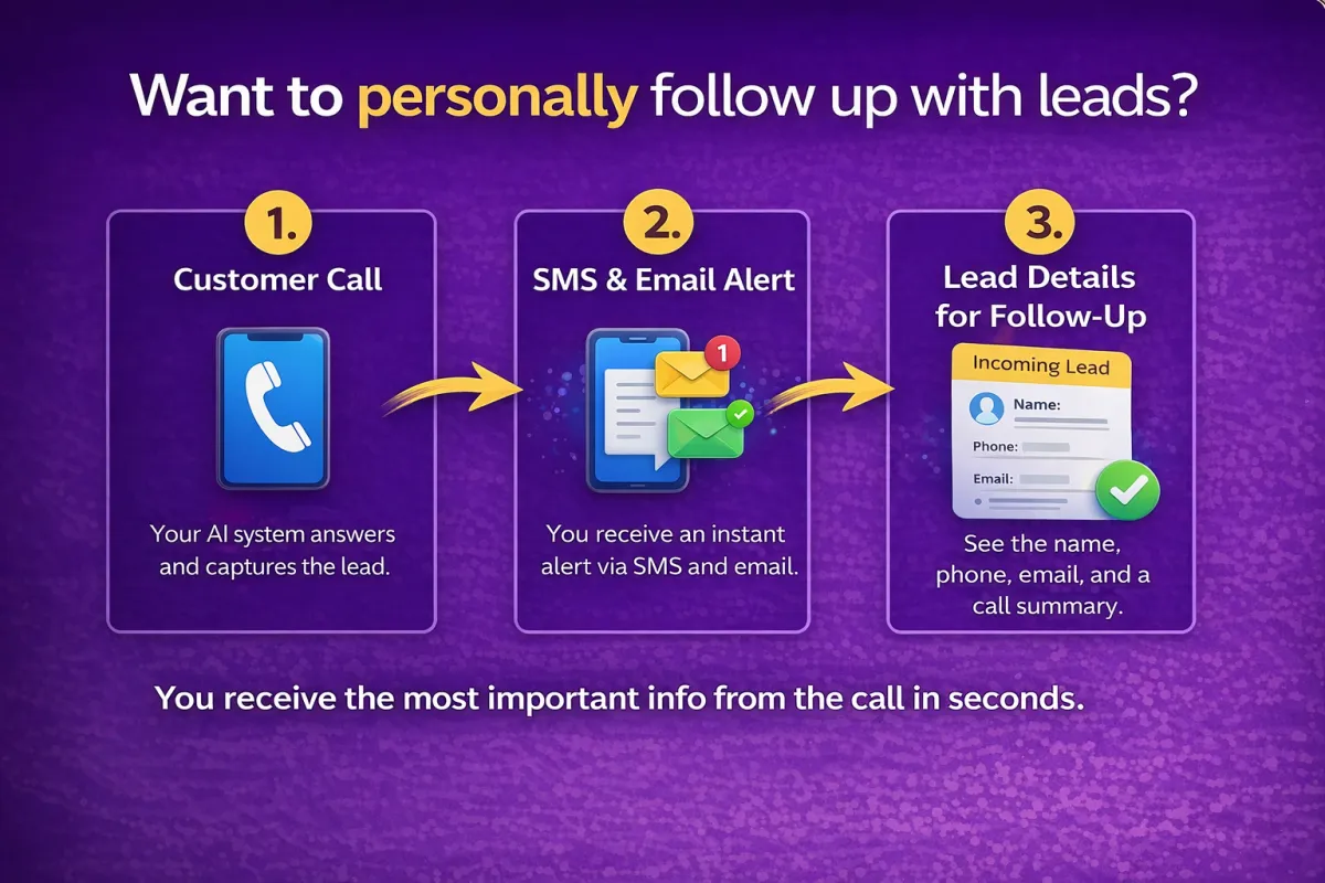 No. The goal is not to replace your team — it’s to support them. The AI handles missed calls, after-hours inquiries, and busy periods so your staff can focus on higher-value tasks while no lead gets missed.