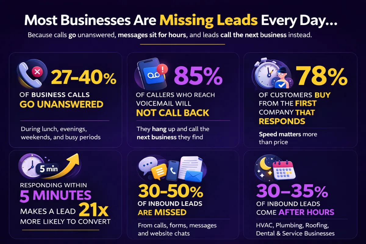 Service-based businesses that rely on calls and appointments see the biggest impact — including dentists, med spas, plumbers, electricians, HVAC companies, contractors, and other local service providers.